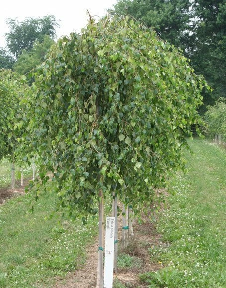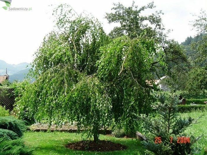 Wolno rosn膮ce drzewo o parasolowatej, mocno zwisaj膮cej koronie. Kora jest g艂adka i bia艂a. Li艣cie wcze艣nie rozwijaj膮 si臋 wiosn膮 i s膮 jasnozielone, jesieni膮 przebarwiaj膮 si臋 na 偶贸艂to. Dobrze ro艣nie w ka偶dych warunkach.