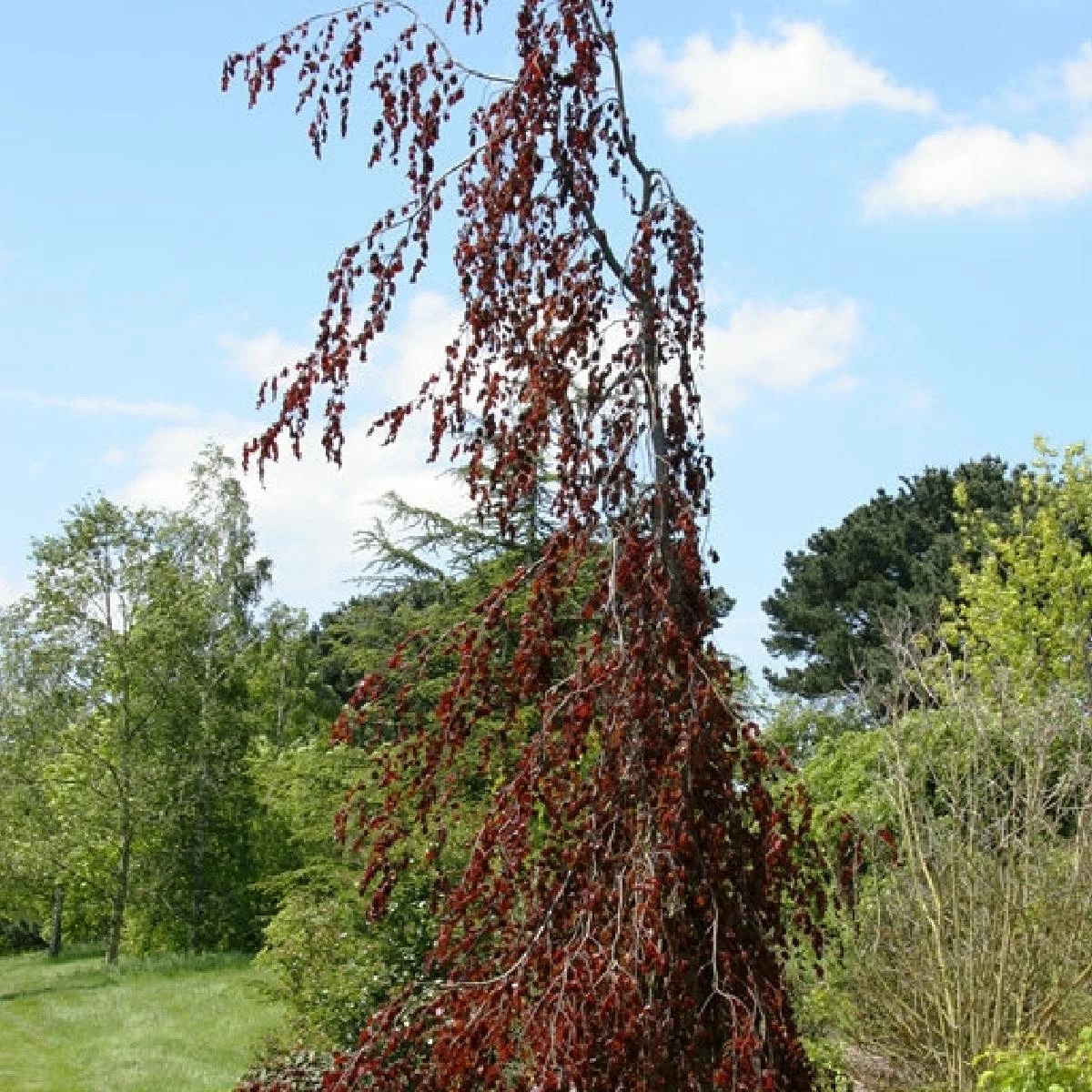 Buk o silnym wigorze, czerwonych liściach i mocnym zboczu. Stosunkowo mały za młodu. Pęd wiodący jest zakrzywiony i skierowany ku górze, jak na zdjęciu, a pędy boczne opadają. Piętnastoletnie okazy dorastają do 7 m wysokości i 2-3 m szerokości. Stoją naturalnie bez ligatur. Starsze rośliny rozwijają kilka głównych pędów, do kilku metrów szerokości i tyle samo szerokości, z błyszczącymi purpurowymi liśćmi latem i jasnobrązowymi i złotymi liśćmi jesienią. Bardzo podobna do Fagus silvatica 'Purple Fountain’, charakteryzuje się lekko zwartym pokrojem i gęstym ulistnieniem.