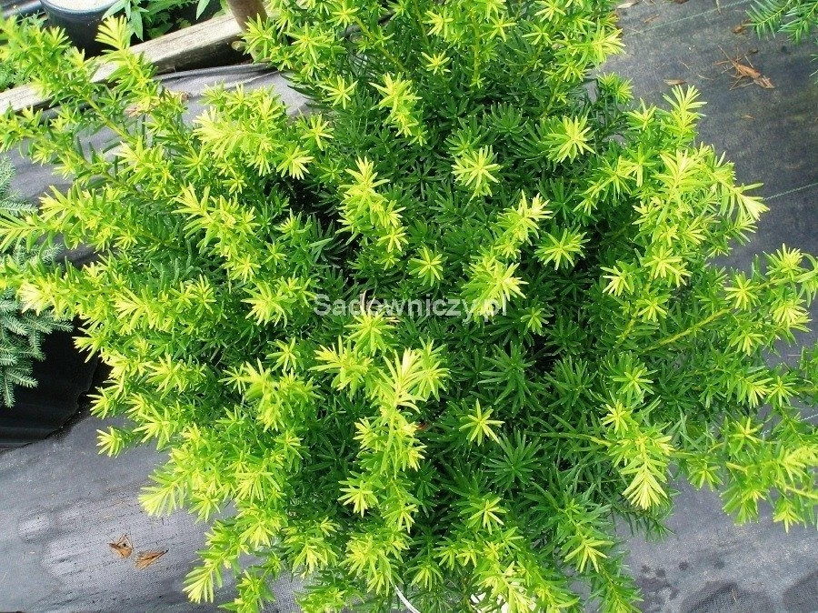 Igły zielone, złotoobrzeżone, nie przebarwiają się na zimę.