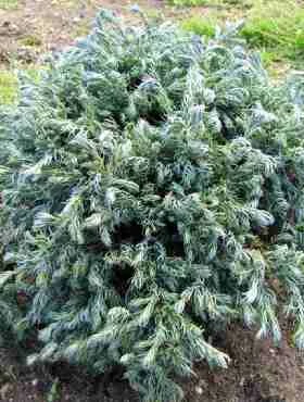 Forma szerokosto偶kowa, zwarta, wzrost wolny, p臋dy i ig艂y mocno poskr臋cane o barwie jasnoniebieskiej. Dorasta po 10 latach do oko艂o 1-1,3 m wysoko艣ci. Ko艅ce p臋d贸w charakterystycznie zawini臋te.聽Strefa mrozoodporno艣ci 5b.