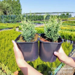 Tworzy聽krzew:聽 forma w膮skosto偶kowa, barwa 艂usek jasnoniebieska, ko艅ce m艂odych przyrost贸w posiadaj膮 kremowe przebarwienia, bardzo dobra odmiana 偶ywop艂otowa.