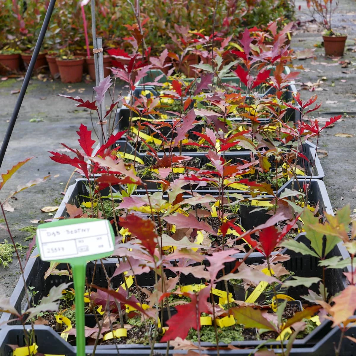 Dąb błotny – Quercus palustris – drzewo dorastające do 20–30 m wysokości. Stare drzewa są łatwe do rozpoznania – mają zwisające dolne gałęzie. Wymaga gleb wilgotnych i rośnie powoli. Liście tego gatunku jesienią przebarwiają się na czerwono.