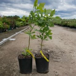 Dąb szypułkowy – Quercus robur – Drzewo wytwarzające szeroką koronę i dorasta do 20–25 m wysokości. Duże liście tego gatunku (do 20 cm długości) są dość głęboko klapowane, a klapy ząbkowato zakończone. Jesienią liście przybierają kolor czerwonobrązowy lub czerwony.