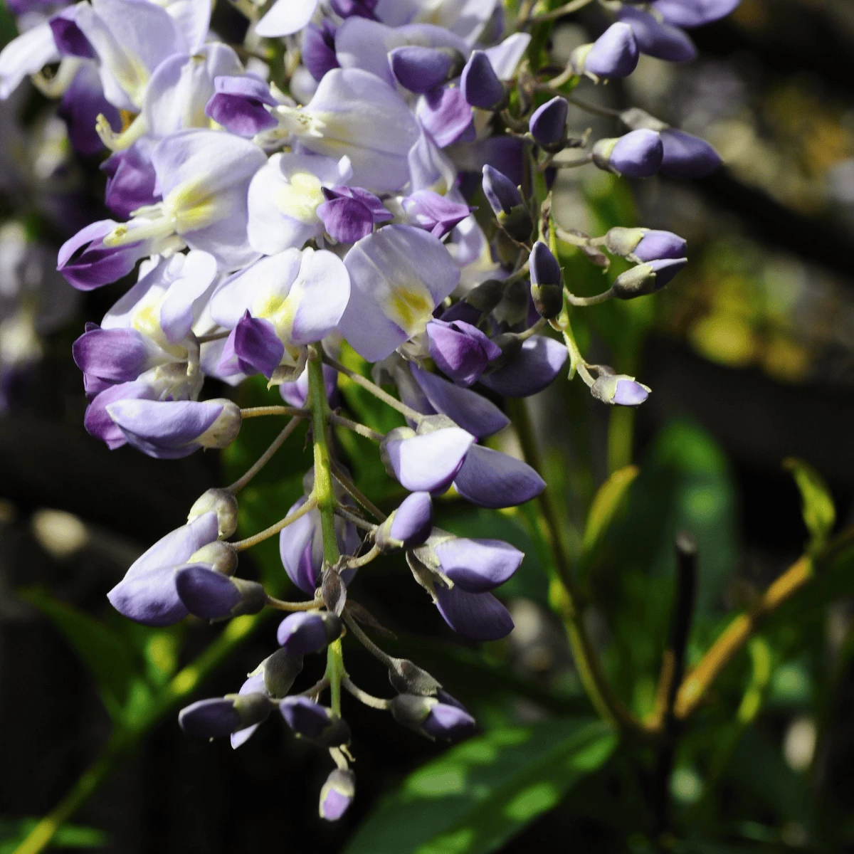 Pi臋kne pn膮cze o do艣膰 silnym wzro艣cie (1-2 m/rok). Osi膮ga wys. ok. 10m. Kwiaty niebieskofioletowe z ja艣niejsz膮 podstaw膮, zebranych w d艂ugie groniaste kwiatostany. Kwitnie ju偶 w 2-3 roku po posadzeniu w V i ponownie w VIII-IX.