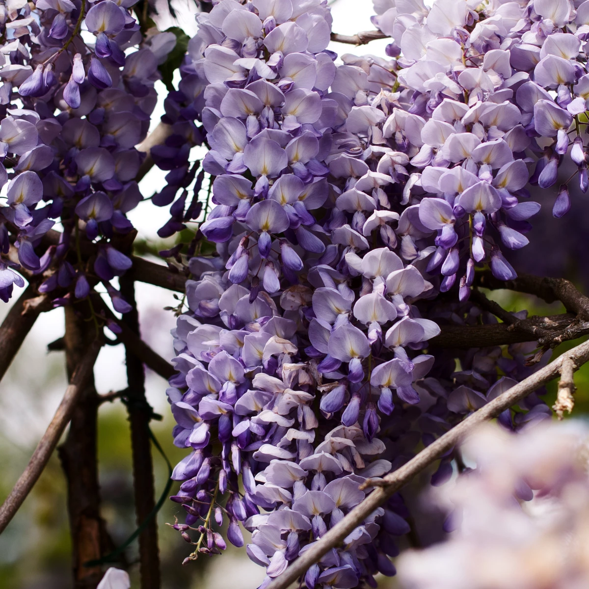 Ci臋cie: Ci臋cie glicynii przyspieszy jej kwitnienie oraz ograniczy jej wzrost. Przez pierwsze 2-3 lata po posadzeniu, pozwalamy glicynii swobodnie rosn膮c, aby sie wzmocni艂a. Nast臋pnie tnie sie ja silnie, aby wymusi膰 zawi膮zanie pak贸w kwiatowych. Paki zawi膮zywane s膮 wczesna jesieni膮, dlatego podstawowe ciecie wykonuje sie latem (koniec lipca) przycinaj膮c wi臋kszo艣膰 nowych p臋d贸w nad 4 li艣ciem, a pozostawiaj膮c nieprzyci臋te tylko p臋dy, kt贸re s膮 potrzebne do ukierunkowania wzrostu ro艣liny. Wczesna wiosn膮 mo偶emy ciecie poprawi膰, wycinaj膮c p臋dy bardzo cienkie, a na bocznych p臋dach pozostawi膰 tylko 2-3 paki. Miejsca ciecia powinny by膰 zamalowane pasta do zabezpieczania ci臋tych drzew. Przyspiesza kwitnienie tez ciecie korzeni, kt贸re mo偶e wywo艂a膰 kwitnienie w nast臋pnym roku. Korzenie tniemy wiosna (marzec), wbijaj膮c szpadel mo偶liwie g艂臋boko doko艂a ro艣lin w odleg艂o艣ci 1-2 m od nich.