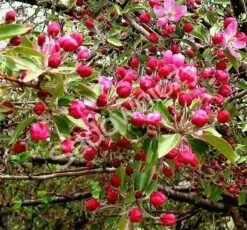 Jesienią ma jadalne, purpurowoczerwone owoce o średnicy 3 cm, które pozostają na drzewie aż do mrozów. Można je