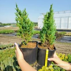 Gęsty, wyprostowany krzew o regularnej, stożkowatej koronie i spiczastym wierzchołku. Miękkie w dotyku, dość sztywne igły są niebieskozielone, zimą stają się stalowoniebieskie. Dorasta do 3 m wysokości przy średnicy 1 m. Doskonały na żywopłoty i rabaty.
