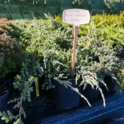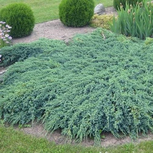 W odróżnieniu od innych odmian jałowców łuskowatych jest to szybko rosnący krzew iglasty o gęstym, płożącym pokroju. Po 10 latach osiąga do 0,5m wysokości i nawet 3 m średnicy. Gęsto ułożone pędy pokryte są kłującymi, krótkimi, intensywnie niebiskimi igłami. Roślina jest dość ekspansywna- mocno rozrasta się na boki. Stare pędy są sztywne, a młode bardziej wiotkie, przewieszające się na końcach. Jest to roślina zimozielona.