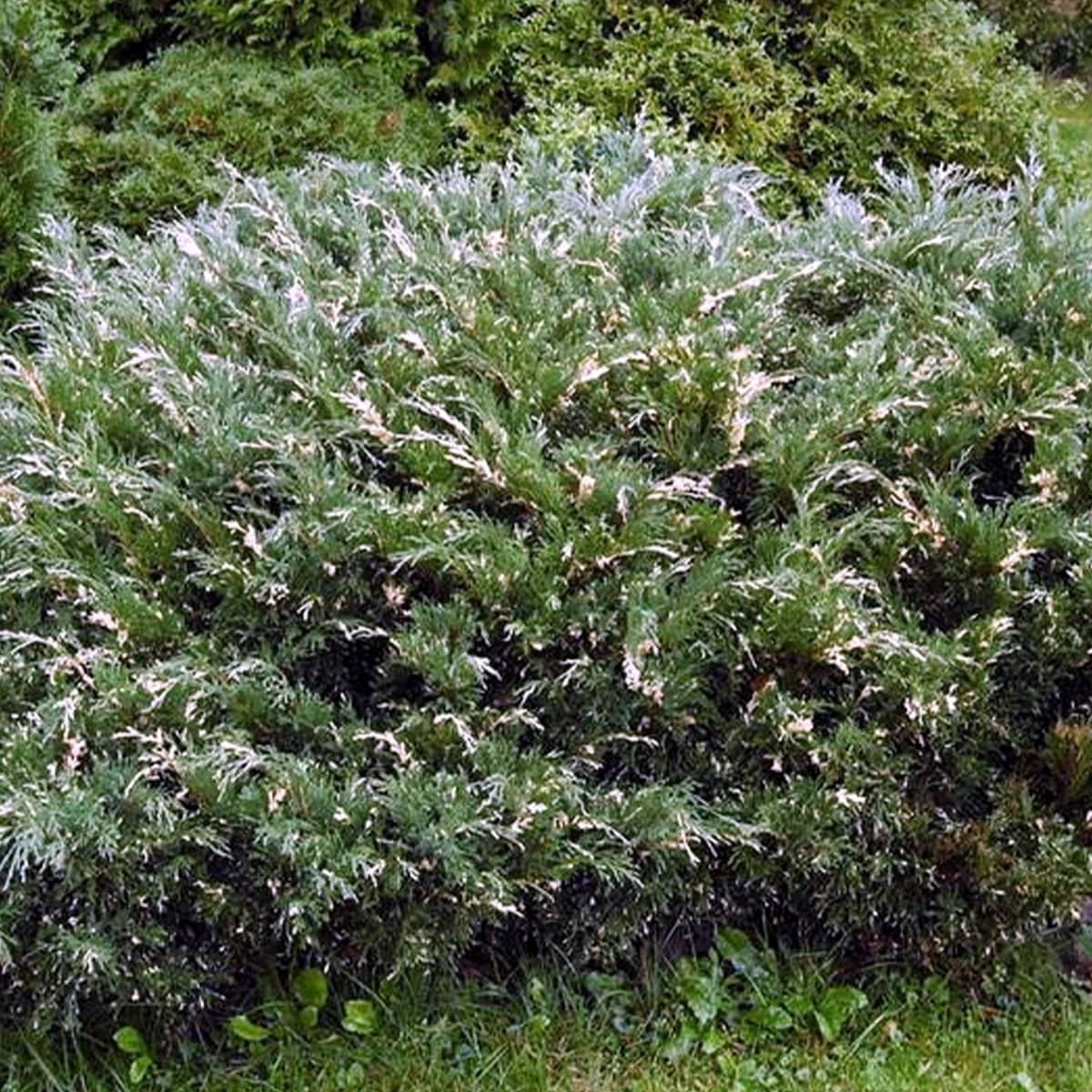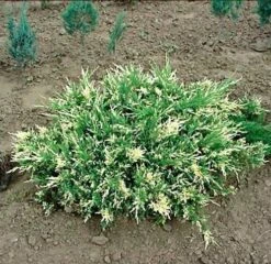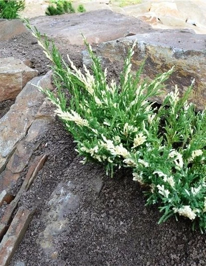 Atrakcyjny i oryginalny krzew. Rośnie nisko, rozłożyście, wszystkie pędy wznoszą się łukowato ku górze, tworząc miskowaty kształt. Wzrost powolny – po dziesięciu latach dorasta do wysokości 0,3-0,4 m przy średnicy 0,6-0,7 m. Pędy pokryte wyłącznie igłami. Elementem dekoracyjnym są igły bez chlorofilu – w efekcie białe, co na tle pozostałych, żywozielonych pędów daje ciekawy efekt wizualny. Zimowe wybarwienie lekko fioletowe.