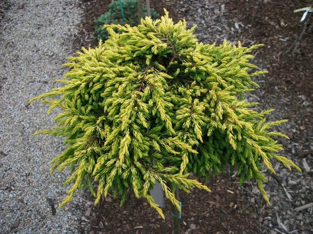 Żółtolistna mutacja odmiany Juniperus communis ‘Repanda’, o podobnym do odmiany wyjściowej, niskim, dywanowym wzroście, ale rosnąca wolniej. Po 10 latach osiąga wysokość 20 cm i szerokość 1,5 m. Igły na wiosnę pomarańczowożółte, z czasem stają się jasnożółte. Krzewy nie cierpią od słońca i nie ulegają „przypaleniom”. Wymaga stanowiska w pełni otwartego, podłoża lekko kwaśnego i umiarkowanie wilgotnego. Do stosowania we wszelkich rodzajach terenów zieleni, w tym w trwałych pojemnikach i różnych małych założeniach.