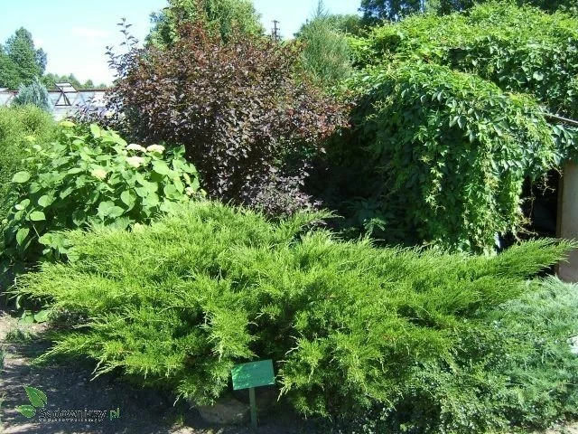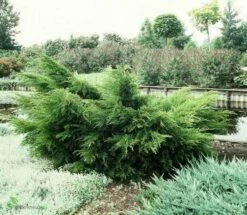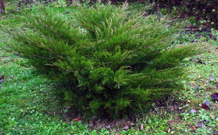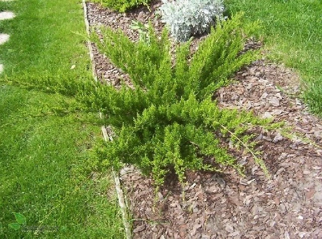 Krzew rozłożysty o jasnozielonych igłach dorastający do ok. 1,5 m wys.