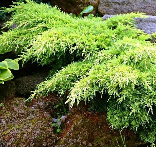Silnie rosnący krzew o początkowo płaskich, następnie ulegających