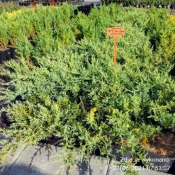 Charakteryzuje się nieregularnym wzrostem i wałeczkowatymi pędami, które pokryte są złoto-żółtymi, krótkimi igłami. Wewnątrz krzewu igły zabarwiają się na jasnozielony kolor.