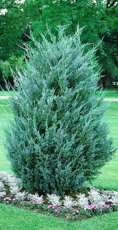 Odmiana wąskokolumnowa, dosyć silnie rosnąca, osiągająca w wieku 10 lat 2,5 m wys. Pędy wałeczkowate, ustawione pionowo, lekko odstające na boki. Zabarwienie intensywnie niebieskie. Jedna z najintensywniej niebiesko zabarwionych odmian. Wymagania glebowe i wilgotnościowe małe. Polecana do barwnych zestawień ogrodowych i na szpalery.
