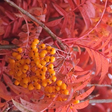 Kwitnie pod koniec wiosny. Po kwitnieniu pojawiają się złotożółte korale, które niezwykle ciekawie kontrastują z pierzastymi, mocno czerwonymi liśćmi jesienią; dojrzewają od VIII do X. Dorasta do około 4-5 m wysokości i tylko 80 cm szerokości.