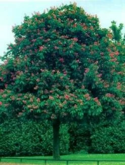 Kasztanowiec o czerwonych kwiatach dorasta do wysokości ok. 15–20 m. Charakteryzuje się dosyć obficie rozgałęzioną koroną, jednak nie tak wznoszącą się do góry jak u kasztanowca białego. Ponadto odmiana cechuje się prostym pniem, bardzo dobrze widocznym w obrębie praktycznie całej korony. Kora ma barwę brunatno-zieloną, a z wiekiem drzewo nabiera coraz bardziej brunatnego zabarwienia. Liście pięciopalczaste. Liście nie ulegają przebarwieniu wraz z nadejściem jesieni, lecz opadają zielone. Kwiaty przybierają barwę niejednolicie czerwoną, kwitnie obficie i pojawiają się dwa tygodnie później niż w wypadku odmiany z kwiatami białymi.