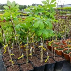 Drzewo o sto偶kowatej, g臋stej koronie i ga艂臋ziach ustawionych od samej ziemi pod k膮tem 45掳. Starsze egzemplarze stopniowo poszerzaj膮 si臋 i staj膮 si臋 bardziej kuliste. Dorasta do 8 m wys. i 6 m szer. Li艣cie pi臋ciopalczaste, ciemnozielone. Kwiaty bia艂e, V. Stanowiska s艂oneczne i cieniste. Ma艂e wymagania glebowe, du偶a odporno艣膰 na warunki miejskie. Formy pienne stosuje si臋 do obsadzania ulic i plac贸w