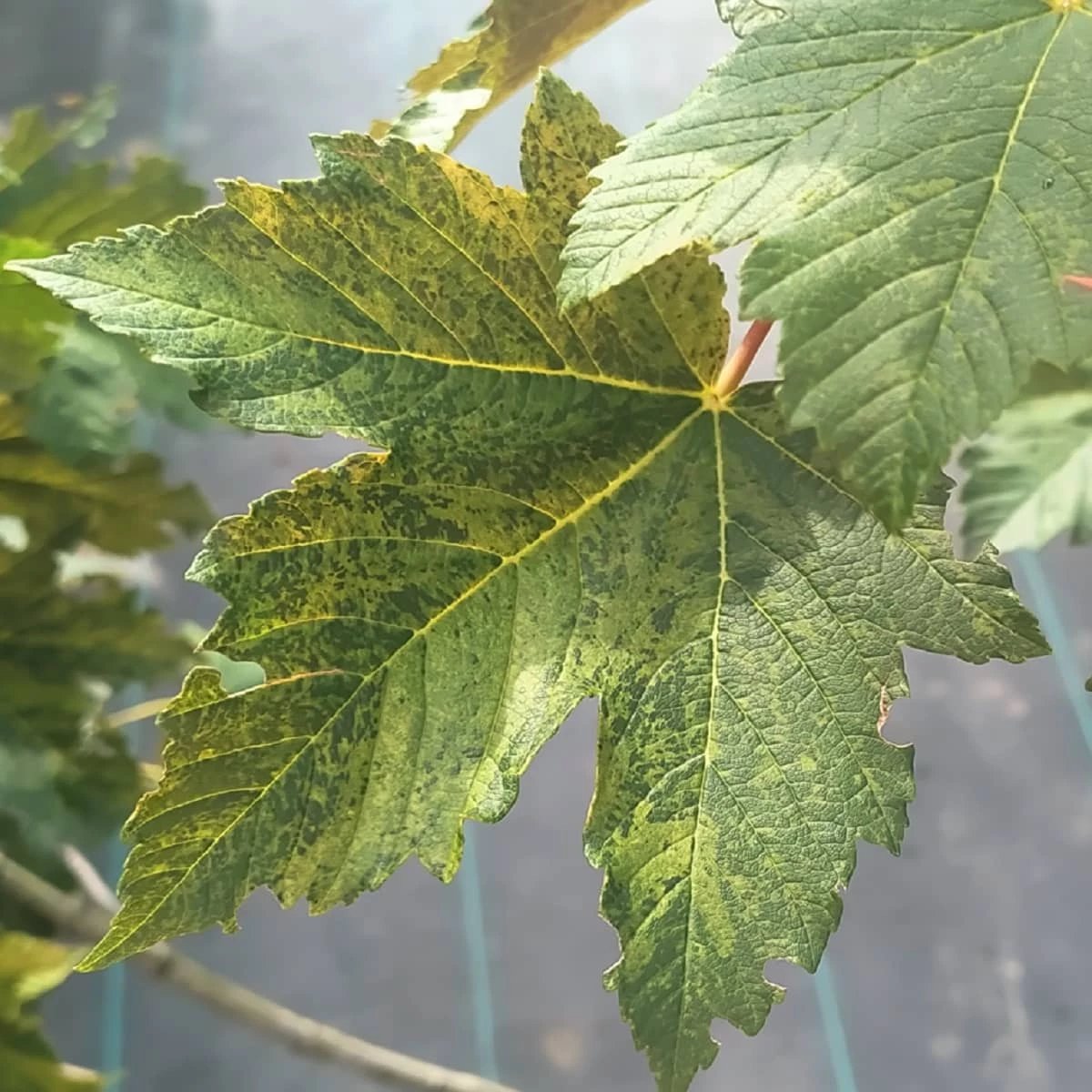 Drzewo z zaokr膮glon膮 i roz艂o偶yst膮 koron膮. Dorasta do 10-12 m wys. Cechuje je niezwyk艂y聽rysunek na li艣ciach.聽 Cz臋艣膰 li艣cia ca艂kowicie przebarwiona, cz臋艣膰 upstrzona plamami o r贸偶nej barwie: bia艂ej i 偶贸艂tej. M艂ode li艣cie pocz膮tkowo 偶贸艂tawe lub miedzianor贸偶owe. Dolna strona li艣cia purpurowa.聽