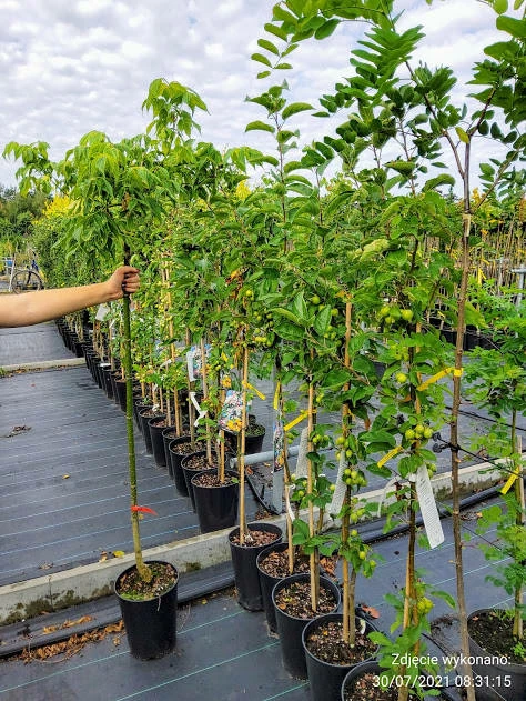 Ma艂e drzewo o dekoracyjnych li艣ciach. Jako ro艣lina nieszczepiona dorasta do 5 m wys. i 4 m szer. M艂ode p臋dy ciemnofioletowe, pokryte bia艂ym woskowym nalotem. Li艣cie ciemnozielone z nieregularnymi z艂oto偶贸艂tymi plamami. Stanowisko s艂oneczne lub p贸艂cieniste. Gatunek bardzo odporny, dobrze ro艣nie w ka偶dych warunkach. Drzewo polecane do ma艂ych ogrod贸w, do kompozycji kolorystycznych. Mo偶e rosn膮膰 w pojemnikach, na balkonach i tarasach.