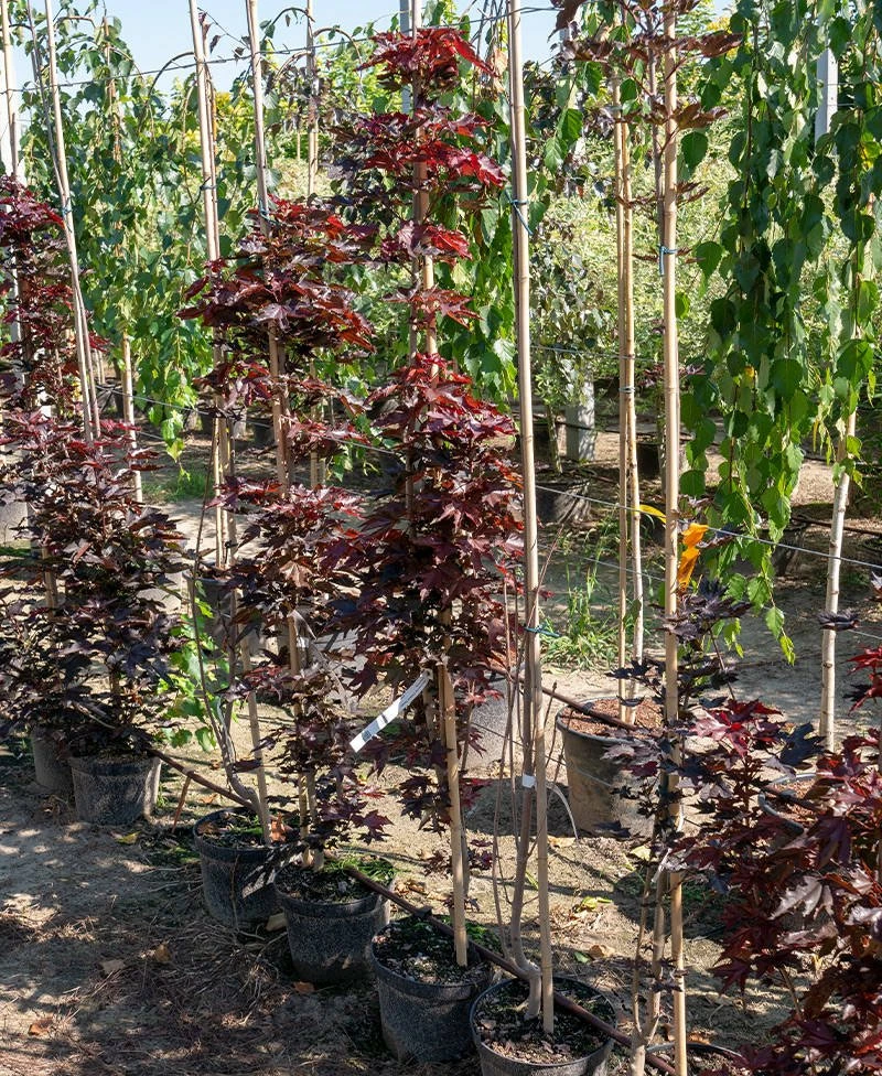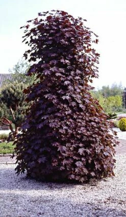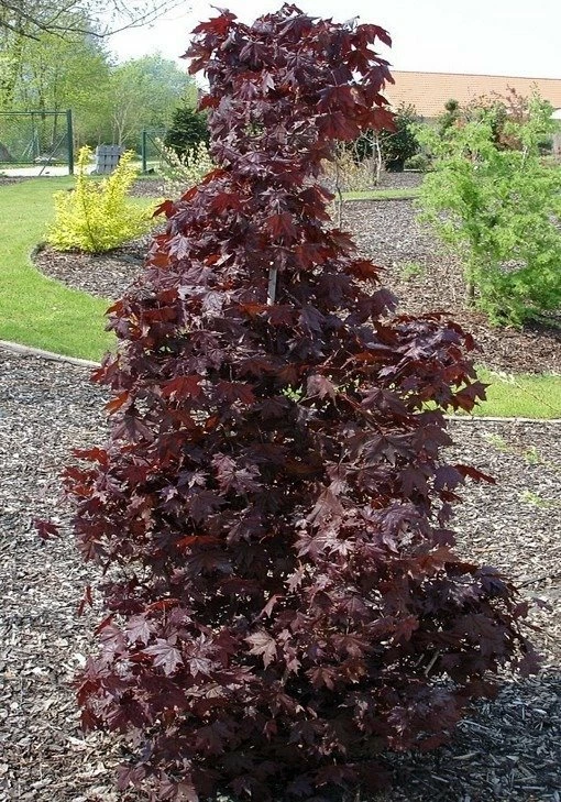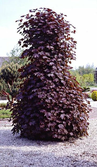 Drzewo o szerokiej i regularnej koronie. Jego wysoko艣膰 zale偶y od punktu szczepienia.聽Mo偶e by膰 te偶 dowolnie formowane. Li艣cie du偶e, do 15 cm d艂ugo艣ci, d艂oniaste, 5-7 klapowe, o d艂ugim ogonku. M艂ode li艣cie matowe, br膮zowoczerwone, p贸藕niej intensywnie ciemnoczerwone. Zachowuj膮 kolor przez ca艂y okres wegetacji.聽