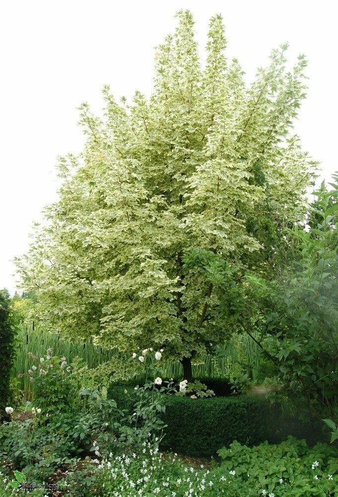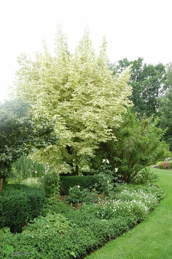 Li艣cie jasnozielone, z szerokim bia艂ym brzegiem i z jasnozielonymi plamami.