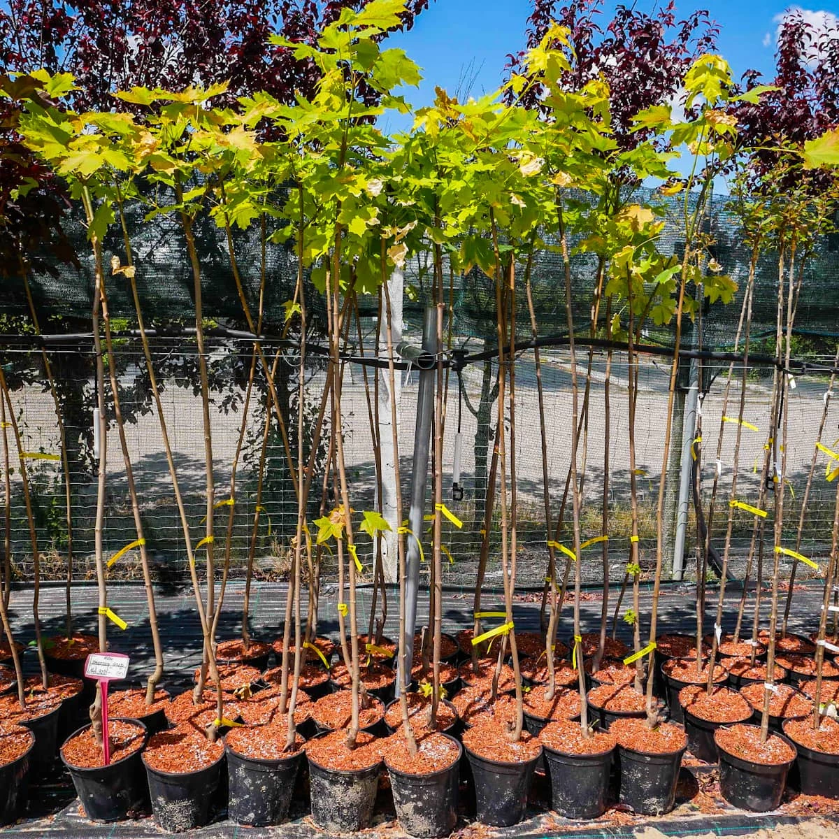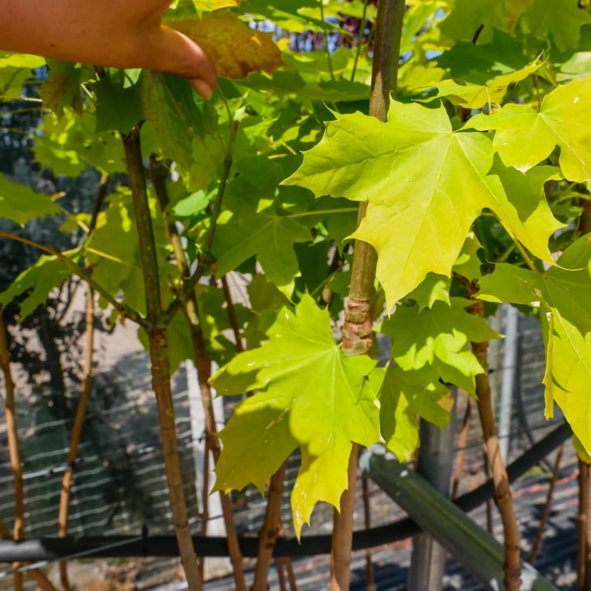 Priceton Gold to odmiana o regularnej, szerokiej koronie i z艂oto偶贸艂tych li艣ciach. Forma raczej wzniesiona nie zbyt szybko rosn膮ca. Kszta艂t li艣ci typowy – du偶e, do 15 cm d艂ugo艣ci, d艂oniaste, 5-7 klapowe, o d艂ugim ogonku. M艂ode li艣cie maj膮 jaskraw膮 偶贸艂t膮 barw臋, starsze staj膮 si臋 zielono偶贸艂te. Z wi臋kszej odleg艂o艣ci, nawet latem, ma jasne „wiosenne” zabarwienie, 艂adnie komponuj膮ce si臋 w krajobrazie z ro艣linami o ciemniejszych li艣ciach.
