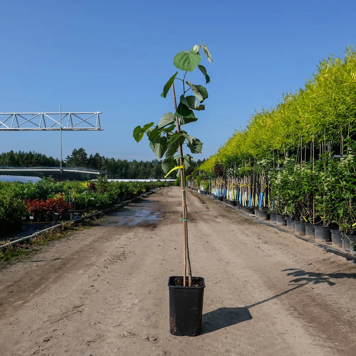 Drzewo o jajowatej, regularnej koronie. Dorasta do 25-30cm wys i 15-20cm szer. Li艣cie sercowate, ciemnozielone,od spodu pokryte kutnerem.Jesieni膮 d艂ugo utrzymuj膮 si臋 na drzewach i 艂adnie przebarwiaj膮 si臋 na 偶贸艂to. Kwitnie VII i VIII. Odporna na zanieczyszczenia powietrza i na susz臋.