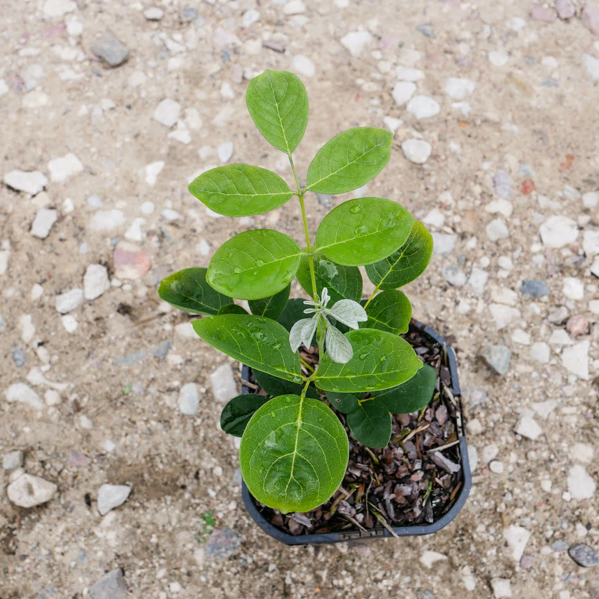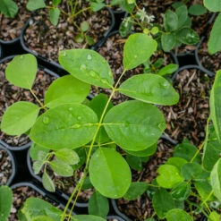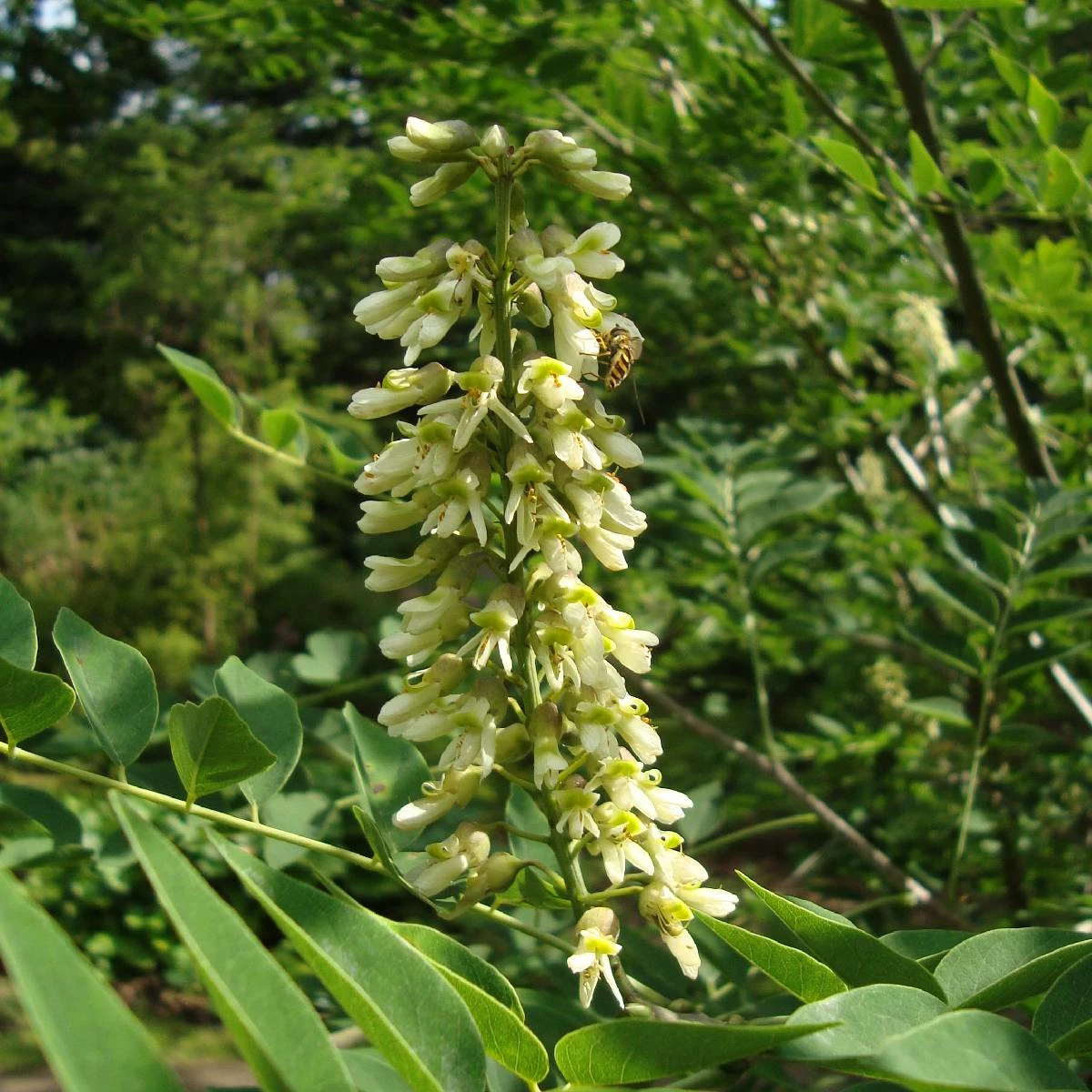 Duże spiralne liście, do 30 cm długości. Młode liście srebrno- niebieskie pięknie wyglądają na ciemnym tle. Kwitnie w lipcu-sierpniu, kwiaty białe lub kremowożółte, dzwonkowate, pachnące, o długości 10-20 cm, po kilka na końcach gałązek. Kwiaty są główną atrakcją tej pięknej rośliny. Kwitnienie trwa długo, od czerwca do sierpnia. Kwiaty są dość typowe dla rodziny motylkowatych, do której należy ten gatunek. Są białe, dzwonkowate, drobne, zebrane w gęste grona kwiatostanów, pionowe, do 20 cm długości. Kwiaty te wydzielają przyjemny delikatny aromat, dzięki czemu przyciągają do ogrodu wiele owadów. Owoce pojawiają się w wczesną jesienią w postaci krótkich, płaskich, brązowych gron. Makia to doskonała roślina do parku i ogrodu. W przydomowym ogródku dobrze wygląda rosnąc na rabatach z kwiatami lub hortensjami lub jako soliter. Jest nie tylko bardzo atrakcyjny, ale także łatwy w uprawie krzew.