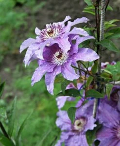 JAK WYGLĄDA: Kwiaty duże, śr. 16 cm, jasnofioletowe, z 8 lekko pofalowanymi działkami. Jesienią przez środek działek przebiega ciemna, purpurowofioletowa pręga. Pręciki składają się z fioletowych pylników osadzonych na nitkach ˗ białych u podstawy, a różowych na górze. Kwitnie VI-VII na pędach zeszłorocznych, a pod koniec lata (IX) na tegorocznych. Liście całobrzegie, pojedyncze lub trójlistkowe. Pędy na młodych przyrostach są zielone, później drewnieją, zmieniając kolor na brązowy.