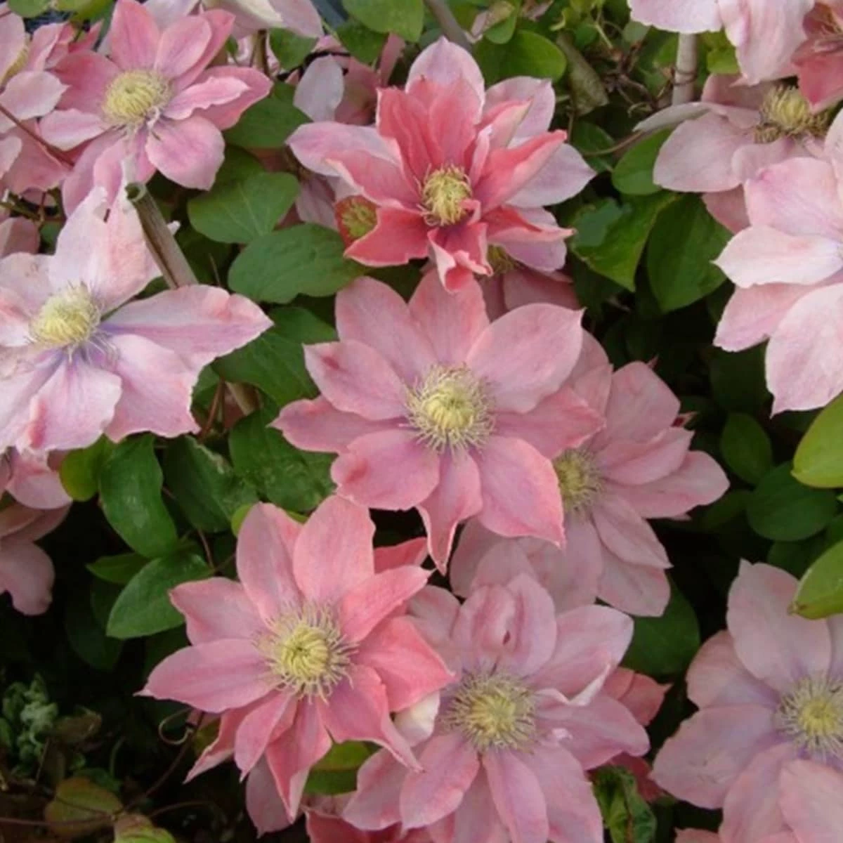 Japońska odmiana o niespotykanej, przyciągającej uwagę, łososioworóżowej barwie kwiatów, z którą ładnie współgrają intensywnie żółte pylniki. Kwitnie w maju i czerwcu, a po przycięciu, od sierpnia do września. Polecana do uprawy przy różnego rodzaju podporach ogrodowych, także naturalnych.