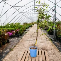 JAK SADZIĆ I PIELĘGNOWAĆ: Roślinę należy posadzić w dole (60 x 60 x 60 cm) z żyzną ziemią i 10-centymetrową warstwą drenażu na dnie, 5˗10 cm głębiej niż rosła w pojemniku. Tnie się słabo. Na przełomie II i III wystarczy usunąć martwe pędy, a żywe można przyciąć słabo: w pierwszym roku 30 cm od ziemi nad silnymi pąkami, w drugim ˗ 70 cm, a w następnych latach na wys. 150 cm. W poł. IV należy ją zasilić nawozem o spowolnionym działaniu (np. Osmocote 5˗6M). W sezonie podlewać.