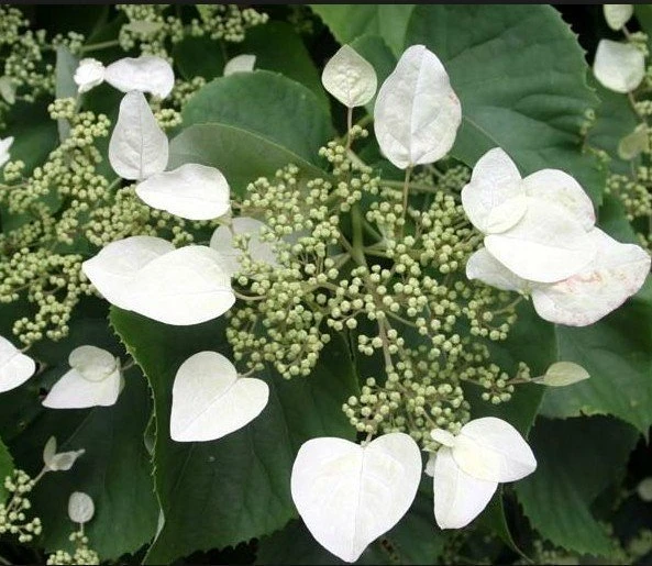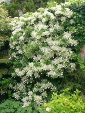 Kwiaty białe zabrane w grona.Kwitnie w czerwcu i lipcu. Dorasta do kilku metrów trzymając się podpory korzonkami czepnymi.Stanowisko półcieniste-północne i najlepiej zaciszne.Świetne pnącze jako roślina okrywowa.
