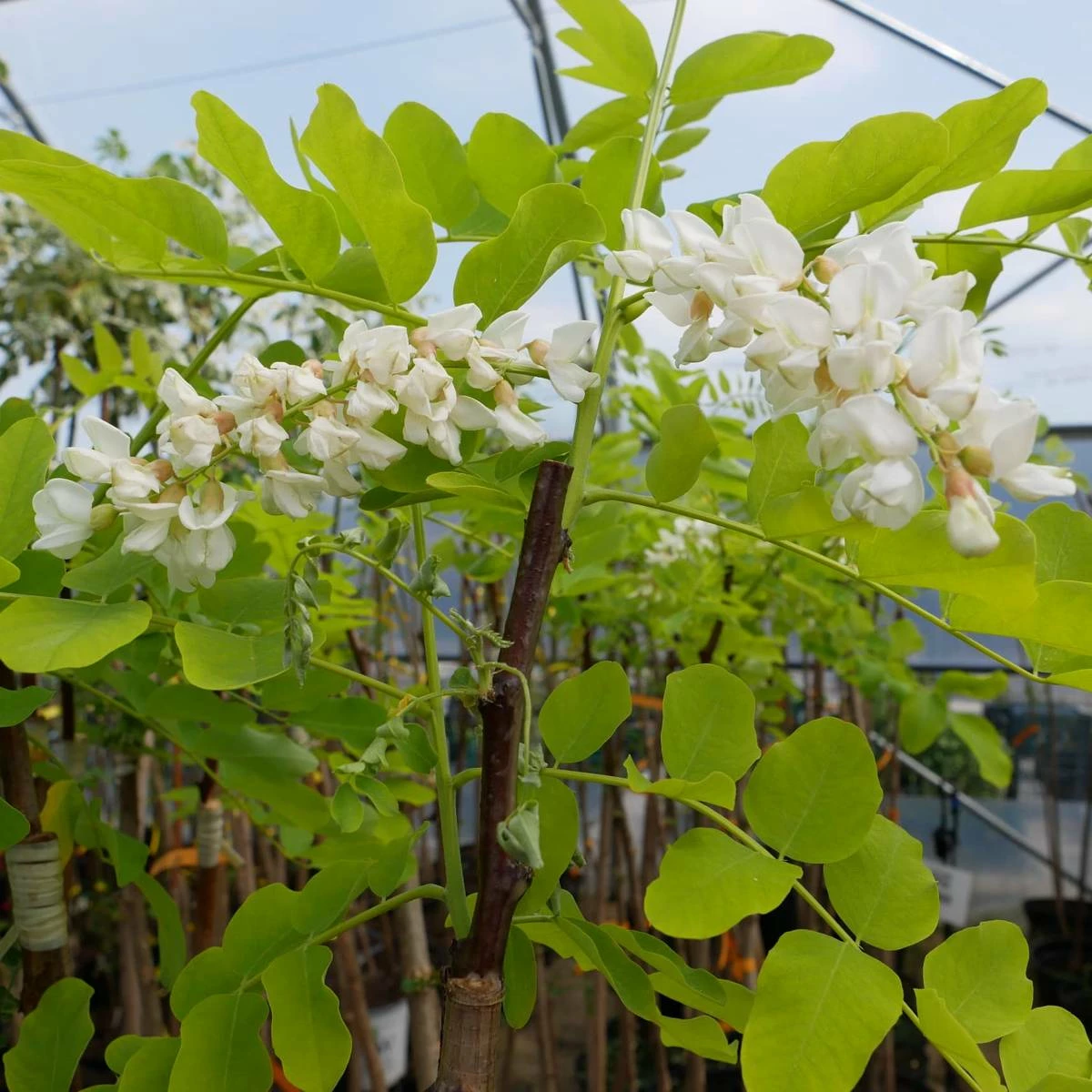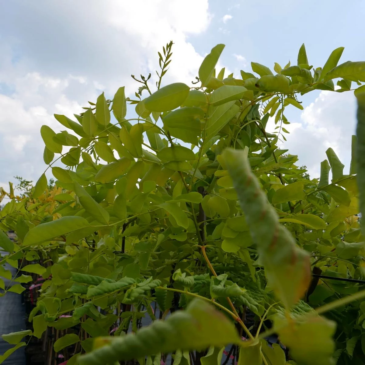 Roślina szczepiona na pniu. Odmiana o pięknym złocistożółtym zabarwieniu liści, które latem stają się żółtozielone. Gałęzie i pień pokryte są głęboko pomarszczoną, szarobrązową korą. Ma długie, pierzastozłożone liście o długości do 25 cm. Są złożone z 11 – 21 eliptycznych lub jajowatych, całobrzegich listków. Liście mają wspaniałe żółte a potem żółtozielone zabarwienie, które jest szczególnie piękne gdy świeci słońce. Ma nieliczne białe kwiaty oraz wytwarza mało nasion, co może być zaletą w warunkach miejskich.