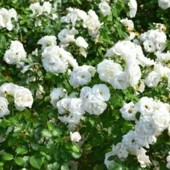 Nie wymagają silnego cięcia – co roku wiosną należy jedynie usunąć chore i uszkodzone pędy – ani usuwania przekwitłych kwiatów (jesienią ozdobą róż okrywowych są liczne koralowe owoce).