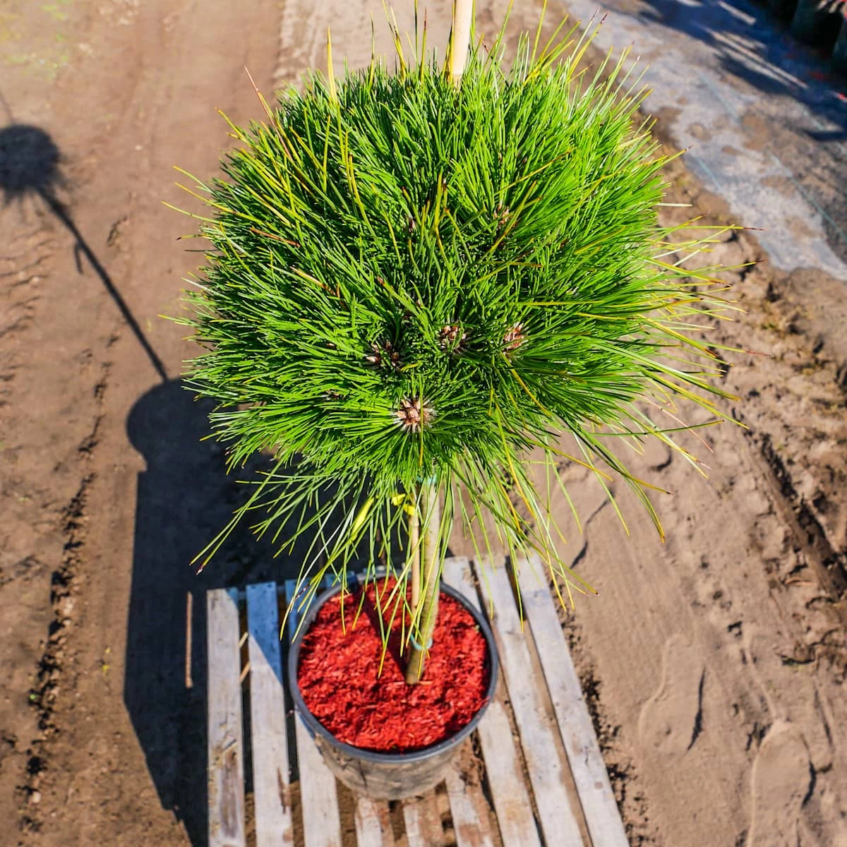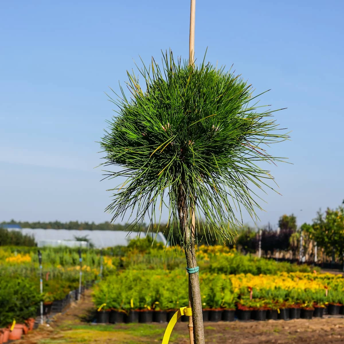 W niesprzyjających warunkach na torfach, wydmach, wysoko w górach i na północy rośliny znacznie niższe lub nawet krzewiaste. Igły po 2 w pęczku, zielone z sinym nalotem, miękkie, 8-12 cm długości, pozostają na drzewie 3-6 lat.