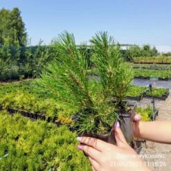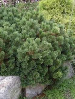 Gatunek sosny o dużej zmienności i licznych podgatunkach botanicznych. Naturalnie zasiedla góry środkowej i południowej Europy. Wzrost krzaczasty z pokładającymi się i wznoszącymi pędami. Przybiera różne formy pokrojowe: od kulistych do nieregularnych. Siła wzrostu zależy od typu formy botanicznej. Niektóre gatunki botaniczne nie przekraczają 0,5 m wysokości, inne dorastają do 20 m i przyjmują formę drzewiastą. Igły podwójne, 3-8 cm, dość grube i sztywne, ciemnozielone. Igły utrzymują się na roślinie 4-6 lat. Szyszki 2-6 cm, po dojrzeniu koloru brązowego. Gatunek w pełni mrozoodporny, światłolubny i niewybredny w stosunku do gleby. Wytworzył liczne odmiany ogrodowe rozmnażane przez szczepienie. Rośliny z siewu o niewiadomym pochodzeniu mają ograniczone zastosowanie w ogrodach, ponieważ nie można przewidzieć ich siły wzrostu. Wielkość tej sosny można korygować poprzez cięcie młodych przyrostów, które wykonujemy w maju.