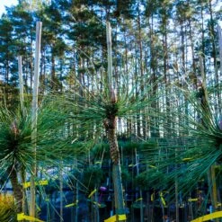 Sosna jeffreyi odmiany Joppi to jedna z najpiękniejszych odmian o egzotycznym wyglądzie. Rośnie bardzo wolno, zachowując kulisty pokrój. Oferowana sadzonka jest w formie szczepionej na wysokości 10-15cm, można ją łatwo ciąć i formować. Igły mają jasno zieloną barwę, pędy są sztywne i wzniesione.