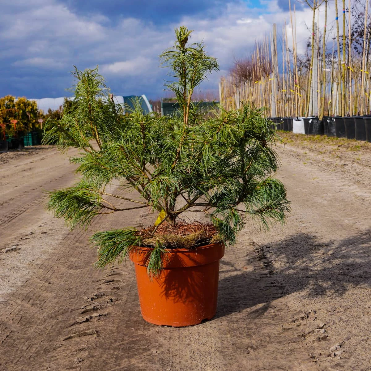 Sosna idealna do ma艂ych ogrod贸w, dorasta do 75 cm wysoko艣ci oraz 60 cm szeroko艣ci po up艂ywie 10 lat. Sosna ta posiada kr贸tkie ig艂y o jasnozielonym kolorze z niebiesko-srebrzystym po艂yskiem.
