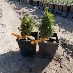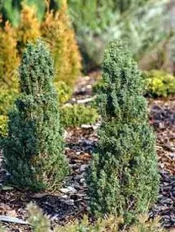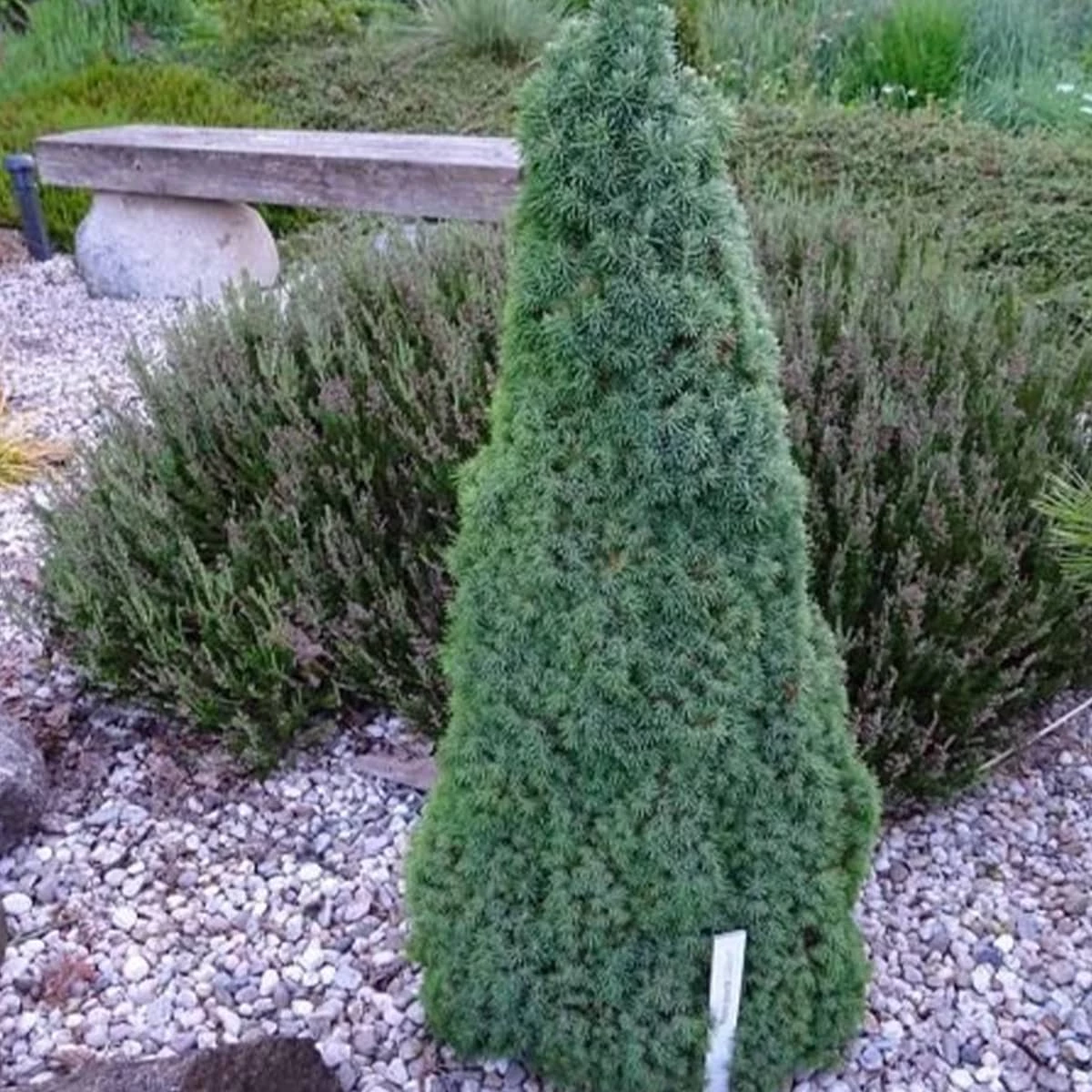 Miniaturowa, bardzo wolno rosnąca odmiana świerka o stożkowatym i gęstym pokroju uzyskana z siewu w Holandii w 1979.
