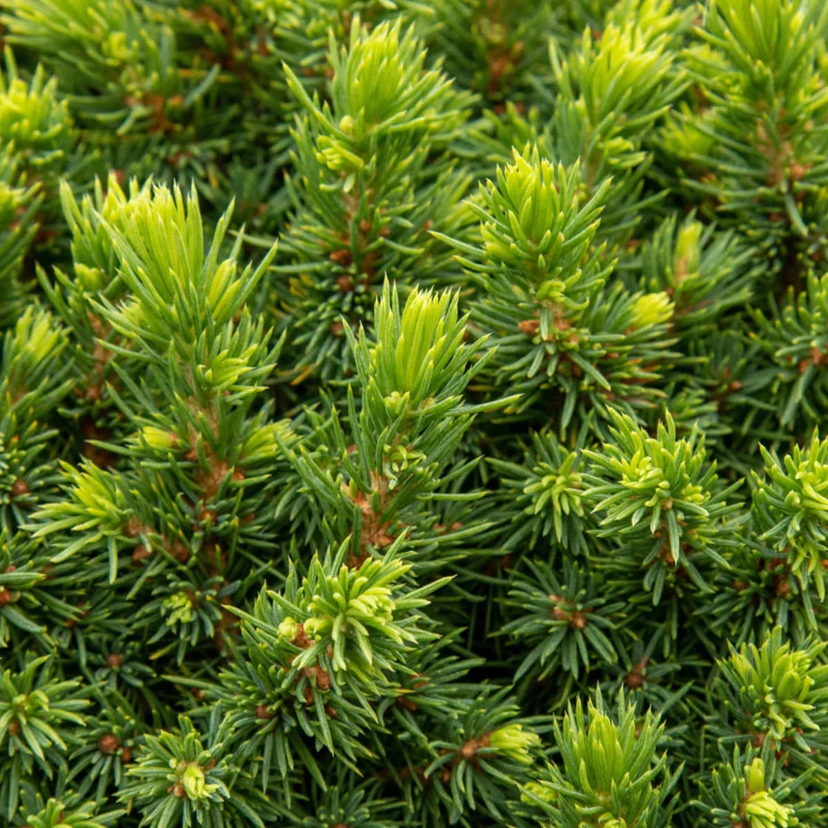 Młode przyrosty soczyście zielone. Dojrzałe igły pozostają dosyć jasne.