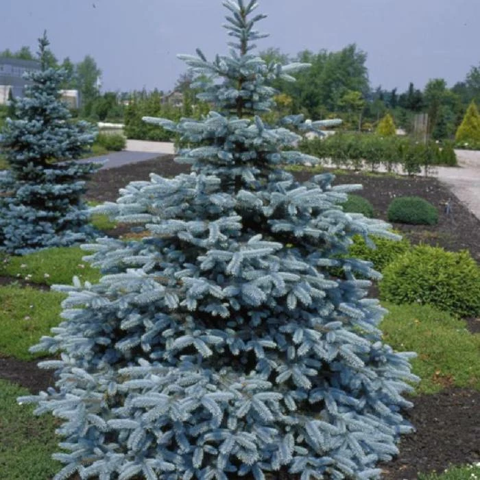 Drzewo dorastające do 5m wys. i ok. 2 m szer. przyrastające 20-30 cm rocznie. Powszechnie znany jako srebrny świerk. Igły sztywne, kłujące, jednobarwne, niebieskawo-zielono-srebrzyste do intensywnie srebrzystych.