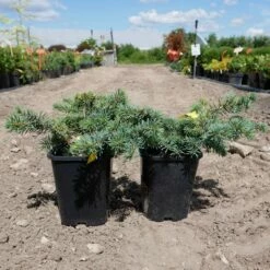 Pędy poukładane gęsto. Krótkie igły mają barwę niebieskozieloną.