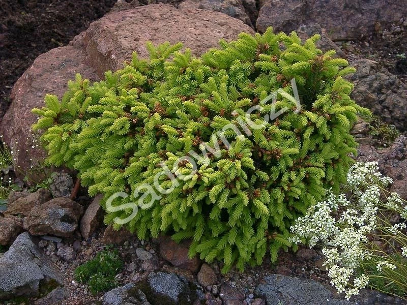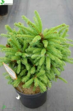 Gęsta, karłowa, wolno rosnąca odmiana świerka. Po 10 latach osiąga 0,5-0,7 m wysokości. Po wielu latach dorasta do 2,5 m. W młodym wieku forma prawie kulista, z czasem stożkowa, z kilkoma przewodnikami.