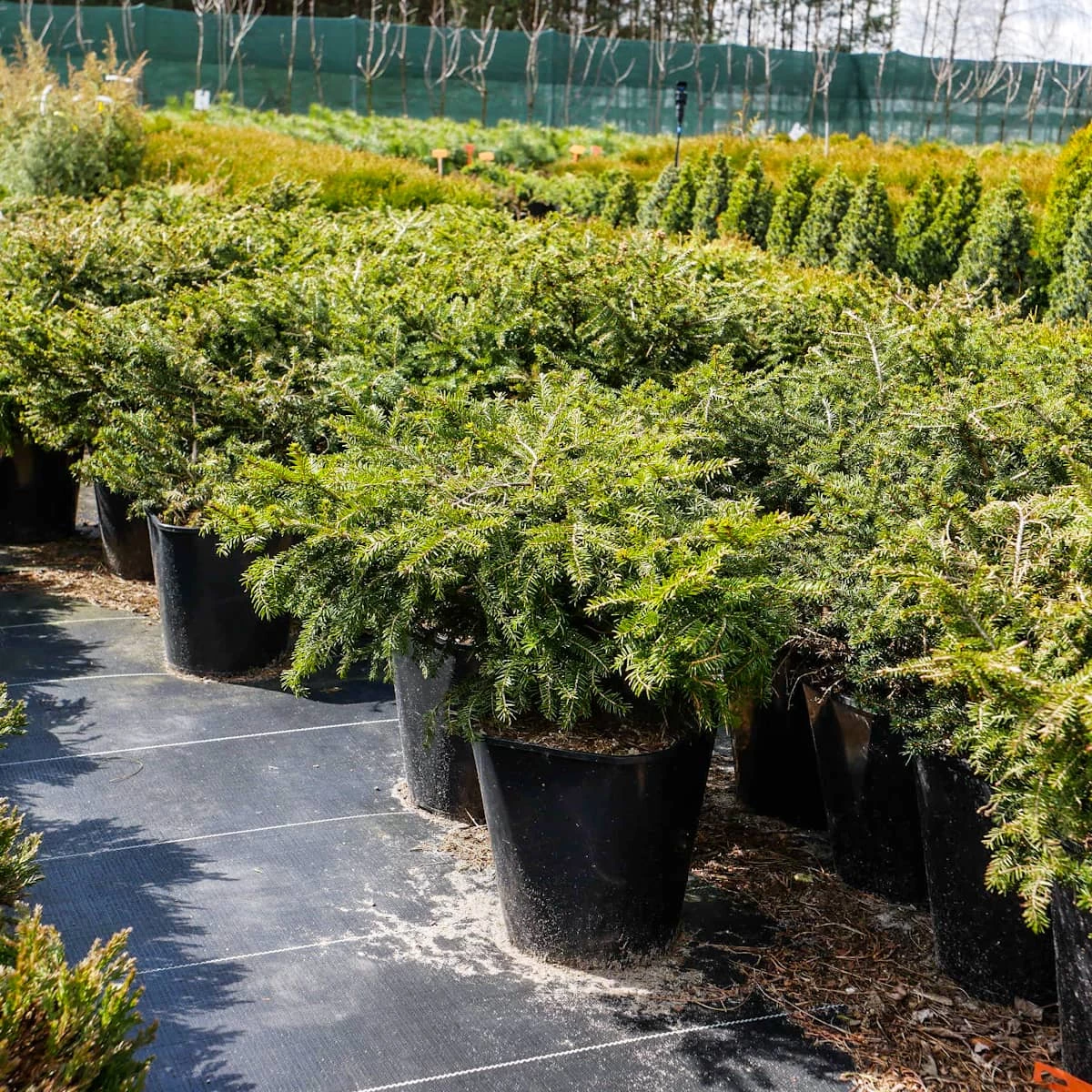 Karłowy, gęsty krzew o pokroju gniazdkowym, u młodych roślin z charakterystycznym zagłębieniem w środku. Osiąga w wieku 10 lat około 0,5m wysokości przy 1m średnicy. Pędy cienkie i giętkie; igły krótkie, jasnozielone.
