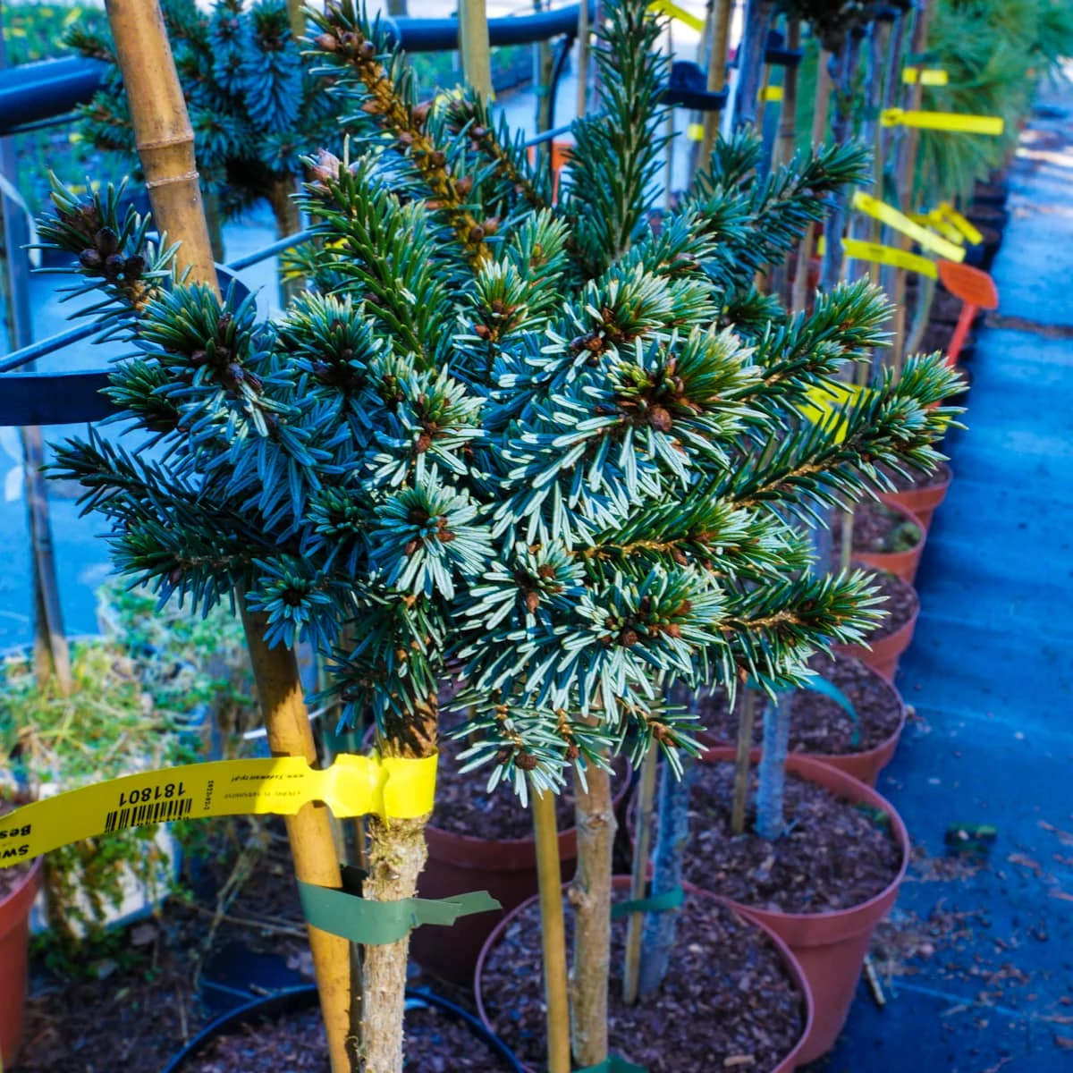 Szczepienie na pniu to proces, w którym roślina jest zaszczepiana na pniu innej rośliny. W przypadku świerka szczepionego na pniu, pęd świerka jest przyczepiany do pnia innego drzewa, zwykle młodszego i szybciej rosnącego, na przykład sosny. W wyniku tego procesu, świerk rozwija się na pniu innej rośliny, co może zwiększyć jego odporność na choroby i szkodniki, a także poprawić jego wzrost i wygląd. Szczepienie na pniu jest często stosowane w ogrodnictwie i leśnictwie jako forma hodowli roślin.