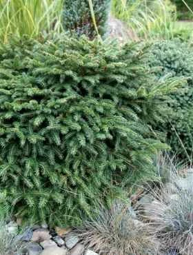 Karłowa odmiana świerka serbskiego o pokroju płaskokulistym.