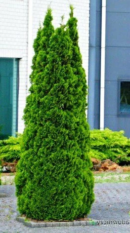 Jest to gęsta i silnie rosnąca odmiana, przybierająca kolumnowy lub wąziutki, stożkowaty pokrój. Z poziomo odstających pędów głównych wyrastają króciutkie, poskręcane, wachlarzykowate rozgałęzienia z intensywnie błyszczącymi, ciemnozielonymi łuskami. Drzewo to rośnie szybko i osiąga 5 do 8 m wysokości. Lubi stanowiska słoneczne z żyzną i wilgotną glebą. Można ja stosować na żywopłot nieformowany, do nasadzeń grupowych, kompozycji barwnych i na szpalery. Jest doskonałym tłem dla innych roślin liściastych i bylin. Jest rośliną zimozielona i mrozoodporna.