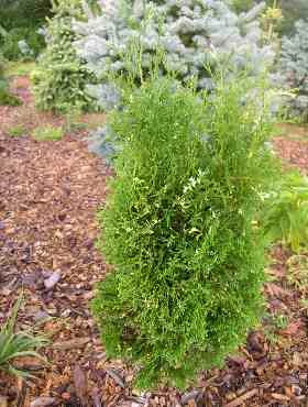 Odmiana tuji polecana do małych ogrodów przydomowych, ogrodów skalnych i różnych kompozycji mieszanych.