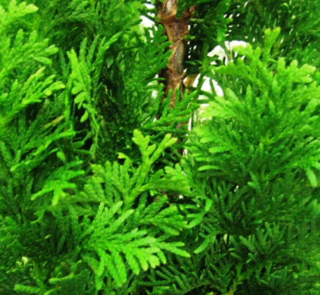 Gałązki są ciemnozielone, ułożone pionowo, bardzo gęste.