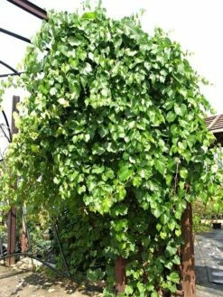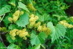 Vitis riparia| Winorośl pachnąca (łac. Vitis riparia), podobnie jak inne gatunki winorośli, jest okazałym, silnie rosnącym pnączem, którego pędy dorastają do 10–12 m długości. Duże liście winorośli pachnącej są w sezonie zielone, a jesienią przebarwiają się na żółto. Liście gęsto pokrywają pędy, dzięki czemu pnącze stanowi znakomitą, gęstą zasłonę.